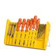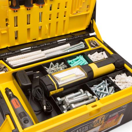Cu tavă organizator amovibilă, ideală pentru păstrarea şuruburilor, diblurilor, burghielor, şurubelniţelor, etc.. Poate fi utilizată şi independent;