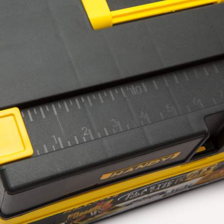 Datorită dimensiunii compacte, lada este uşor de transportat, având totodată o multitudine de compartimente în interior. Pe capac se află o riglă încorporată, foarte utilă în cele mai diverse situaţii. Pe partea superioară se ală un sertar cu o tavă cu 6 compartimente mai mici şi un compartiment mare.