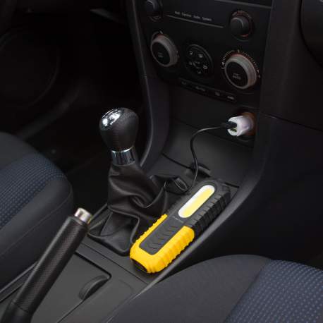 Lampă 2 în 1, cu funcţie de lanternă în partea superioară, şi cu COB LED pe partea frontală. Utilizarea este ecologică datorită acumulatorului Li-Ion reîncărcabil, încorporat - care asigură iluminare de durată şi de mare intensitate.