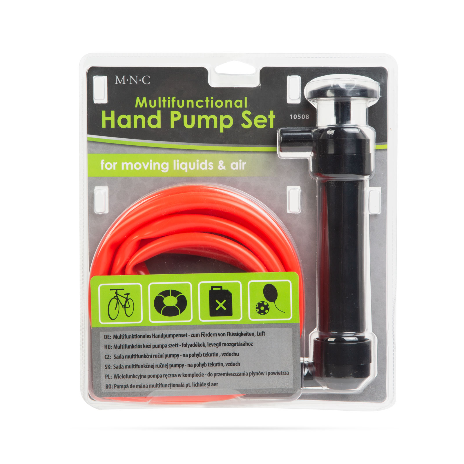 Cu ajutorul acestei pompe de mana puteti vehicula cu usurinta lichide, sau aer. Furtunul de cauciuc accesoriu de 128 cm este ideal pentru pomparea uleiului, schimbarea combustibilului si pomparea oricarui lichid. Furtunul de aer accesoriu poate fi utilizat pentru umflarea saltelelor pneumatice, accesorii pentru plaja, cauciucuri pentru biciclete, mingi, baloane, etc.