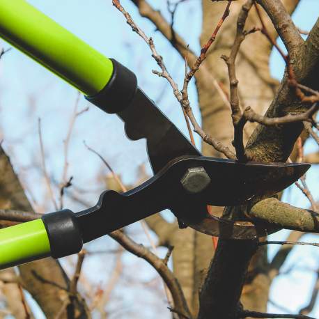 Chiar si livezile mai mari pot fi intretinute cu aceasta foarfeca de crengi. Crengile sunt usor taiate datorita lamei de otel anti-aderare. Maner lung, antiglisant, cauciucat, pentru o munca confortabila. Datorita designului zimtat al lamei, ramurile nu aluneca, ceea ce usureaza taierea crengilor.