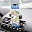 În timpul conducerii, de multe ori avem nevoie de telefon, ex. pt. navigare. Acest suport de telefon practic se fixează în grătarul de ventilaţie, astfel în căldura verii telefonul nu se va supraîncălzi, fiind răcit de aerul rece al climatizării.