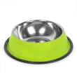 Bol metalic pentru câini din oțel inoxidabil cu suprafața colorată pe exterior. Datorită materialul din care este executat, este potrivit atât pentru hrană, cât şi pentru apă. Uşor de curăţit. Inelul de cauciuc aplicat pe fundul vasului previne alunecarea bolului în timp utilizării. Disponibil în trei dimensiuni, ca atare veţi găsi cu siguranţă dimensiunea potrivită animalului dvs. de companie.