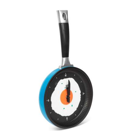 Seamănă înșelător de mult cu un ou prăjit făcut în tigaie. Brațele care indică orele și minutele sunt înlocuite cu o furculiță și un cuțit.