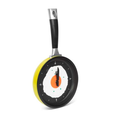 Seamănă înșelător de mult cu un ou prăjit făcut în tigaie. Brațele care indică orele și minutele sunt înlocuite cu o furculiță și un cuțit.