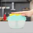 Un aparat de uz casnic practic care facilitează distribuirea și utilizarea detergentului. Pur și simplu umpleți recipientul cu detergent, puneți buretele deasupra și împingeți în jos pentru a pompa detergentul. În timpul pompării, furnizează buretelui doar cantitatea necesară. Datorita designului superior al recipientului, este potrivit si ca suport pentru burete, astfel incat orice agent de curatare se poate intoarce in recipientul de colectare. Economie de material Practic Distribuiți direct pe burete Reîncărcabil Dimensiune: 144 x 96 x 100 mm Material: plastic Dimensiune burete: 98 x 67 x 27 mm Culoare: verde Culoare burete: verde/galben