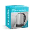 Fabricat din oțel inoxidabil, fierbătorul robust poate fi plasat în orice unghi față de stația de alimentare datorită bazei sale de 360 °. Datorită materialului său, este mai rezistent la temperaturi extreme decât cele din plastic. Firul de încălzire ascuns din oțel inoxidabil permite fierberea rapidă și curățarea ușoară. Nu poți rata nicio bucătărie dacă ai nevoie de o cantitate mare de apă caldă. Capacitate mai mare decât medie Aspect elegant Buton mare de alimentare LED indicator Usor de curatat Oprire automată Protecție la supraîncălzire Putere: 2000 W Sursa de alimentare: 220 - 240V AC, 50 - 60 Hz Capacitate: 2 L Material: otel inoxidabil, plastic LED indicator: roșu Lungime cablu de alimentare: 50 cm Tip cablu de alimentare: 22 IEC 53 (AVV) Culoare cablu de alimentare: negru Culoare: Crom / Negru Greutate: 635 g