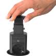 Distribuitor pop-up cu carcasă metalică și 3 prize de protecție pentru copii și 2 prize USB pentru birouri și case.