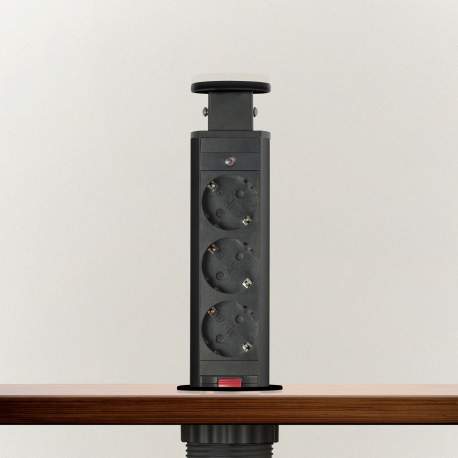 Distribuitor pop-up cu carcasă metalică și 3 prize de protecție pentru copii, pentru birouri și case.