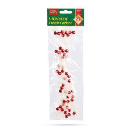 Decorează-ți casa și bradul de Crăciun cu această ghirlandă. Mărgelele strălucitoare de pe panglica din organza creează o atmosferă intimă în casa ta. Ghirlanda lungă de 2,7 metri arată bine și pe pomii mari de Crăciun.