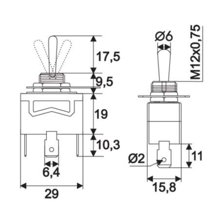 Intrerupatoare cu brat 2 circuit 10A-250V ON-ON