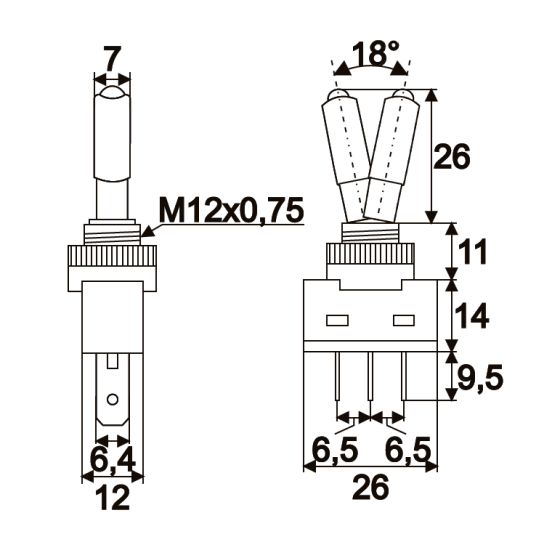 Intrerupatoare cu brat 1 circuit 1A-250V OFF-ON