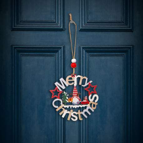Această frumoasă figurină de spiriduș din lemn poate fi un plus perfect pentru Crăciun in casa ta. Figurine drăguțe de spiriduși frumos lucrate, care stau pe cuvintele „Crăciun fericit”, evocând bucuria și distracția sărbătorilor. Ornamentele din lemn conferă căldură și naturalețe oricărei decorațiuni festive. Pictura elaborată și detaliată asigură un aspect meticulos și atrăgător. Figurina este o bucată de lemn puternică, dar ușoară, care poate fi agățată oriunde în casa ta.