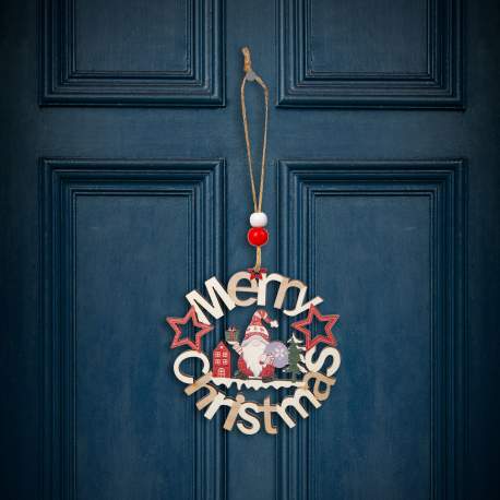 Această frumoasă figurină de spiriduș din lemn poate fi un plus perfect pentru Crăciun in casa ta. Figurine drăguțe de spiriduși frumos lucrate, care stau pe cuvintele „Crăciun fericit”, evocând bucuria și distracția sărbătorilor. Ornamentele din lemn conferă căldură și naturalețe oricărei decorațiuni festive. Pictura elaborată și detaliată asigură un aspect meticulos și atrăgător. Figurina este o bucată de lemn puternică, dar ușoară, care poate fi agățată oriunde în casa ta.