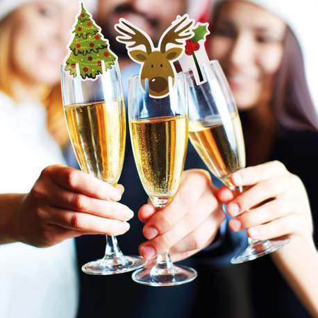 Acest decor de hârtie vine într-o varietate de figuri distractive și drăguțe de Crăciun: Moș Crăciun, om de zăpadă, reni și coarne de ren. Decoratiunile sunt realizate din hartie de inalta calitate, care poate fi usor indoita si fixata pe sticlă fara a provoca zgarieturi. Spatele hârtiei poate fi scris, astfel încât este ușor să identifici cui aparține fiecare pahar.