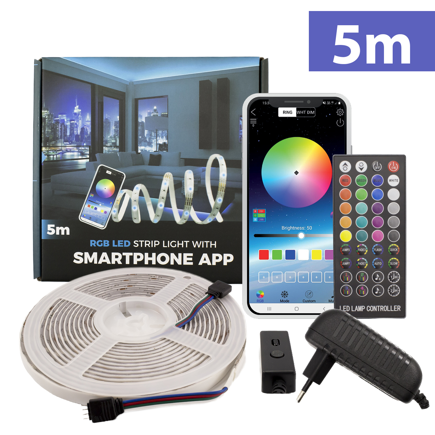 - Grație tehnologiei RGB, cu ajutorul telecomenzii se poate obține orice culoare dorită.