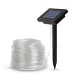 Cablul de lumină are un panou solar care colectează energia din lumina soarelui în timpul zilei. Stochează energia într-o baterie încorporată, astfel încât seara, când se întunecă, se aprinde automat și strălucește cu o lumină albă caldă plăcută. Lungimea cablului vă permite să proiectați creativ liniile de iluminat în spații mai mari și să îl plasați liber acolo unde doriți.