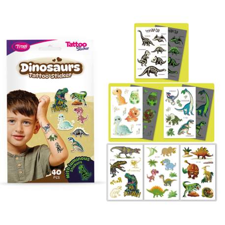 Usor de aplicat, tatuaje simple si spectaculoase cu modele de dinozauri, intr-un set. Pentru copii adevărați iubitori de dinozauri. Aceste autocolante cu tatuaje temporare sunt de înaltă calitate, astfel încât își păstrează culoarea și detaliile vii pentru o lungă perioadă de timp, chiar și zile. Sunt ușor de aplicat și îndepărtat fără a irita sau deteriora pielea. 40 de tatuaje autocolante cu dinozauri pe 6 foi: dinozaur mare, dinozaur mic, dinozaur bebeluș, dinozaur luminos și T-Rex.