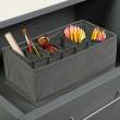 Descoperiți soluțiile noastre practice și elegante de depozitare! Această cutie de depozitare este alegerea perfectă pentru a menține ordinea și organizarea în casa ta. Structura ușoară, dar durabilă a cutiei de depozitare asigură că va fi fiabilă pe termen lung pentru organizare. Stratul exterior este realizat din țesătură de calitate, care nu numai că oferă un aspect estetic, dar este și rezistent și ușor de curățat. Rigiditatea structurii interne este asigurată de o foaie solidă de carton multistratificată. Datorită dimensiunii convenabile a cutiei de depozitare, se potrivește cu ușurință pe rafturi, dulapuri sau chiar sub pat. Acest lucru vă permite să utilizați la maximum spațiul disponibil, păstrând în același timp obiectele importante organizate și ușor accesibile. O cutie de depozitare din țesătură poate fi alegerea perfectă pentru depozitarea îngrijită a hainelor, pantofilor, jucăriilor, cărților sau a oricărui alt articol. Atunci cand nu este folosita, depozitarea intr-un spatiu restrans este asigurata de fermoarul situat in partea de jos, care se poate inchide la utilizare.