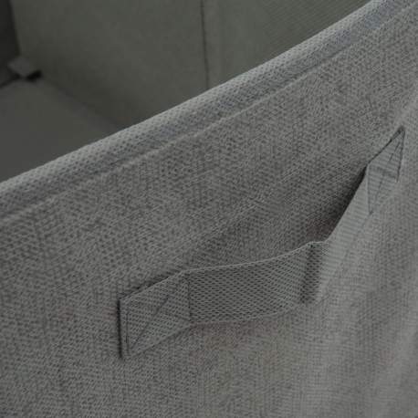 Descoperiți soluțiile noastre practice și elegante de depozitare! Această cutie de depozitare este alegerea perfectă pentru a menține ordinea și organizarea în casa ta. Structura ușoară, dar durabilă a cutiei de depozitare asigură că va fi fiabilă pe termen lung pentru organizare. Stratul exterior este realizat din țesătură de calitate, care nu numai că oferă un aspect estetic, dar este și rezistent și ușor de curățat. Rigiditatea structurii interne este asigurată de o foaie solidă de carton multistratificată. Datorită dimensiunii convenabile a cutiei de depozitare, se potrivește cu ușurință pe rafturi, dulapuri sau chiar sub pat. Acest lucru vă permite să utilizați la maximum spațiul disponibil, păstrând în același timp obiectele importante organizate și ușor accesibile. O cutie de depozitare din țesătură poate fi alegerea perfectă pentru depozitarea îngrijită a hainelor, pantofilor, jucăriilor, cărților sau a oricărui alt articol. Atunci cand nu este folosita, depozitarea intr-un spatiu restrans este asigurata de fermoarul situat in partea de jos, care se poate inchide la utilizare.