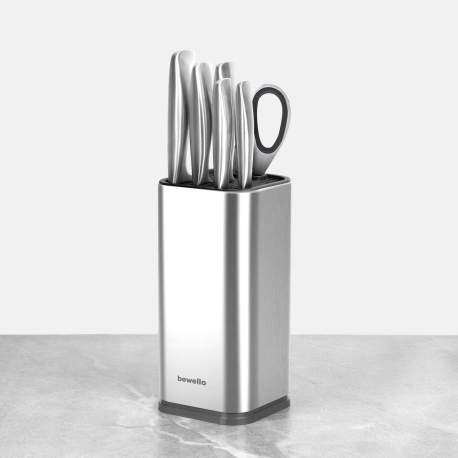 Conținutul setului: | 1 x suport pentru unelte 1 x cuțit de decojit de 3,5" 1 x 5" cuțit de tăiat universal 1 x 8" cuțit de feliere 1 x 8" cuțit de bucătar 1 x 8" cuțit de pâine 1 x foarfece |