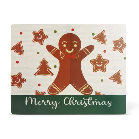 Figura de turtă dulce și inscripția „Crăciun fericit”.