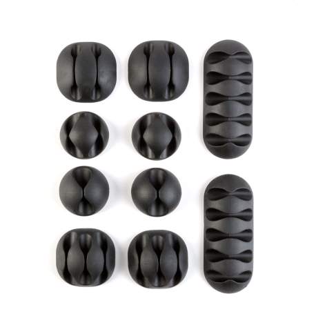 Păstrează-ți cablurile organizate cu organizatorul de cabluri autoadeziv din silicon care poate fi așezat pe masă! Această soluție practică și estetică ajută la prevenirea haosului prin cablu și asigură că toate cablurile dumneavoastră sunt la îndemână atunci când aveți nevoie de ele. Setul este format din mai multe unități, fiecare dintre ele putând susține un număr diferit de cabluri, astfel încât să puteți găsi cu ușurință aranjamentul potrivit nevoilor dumneavoastră. Pot fi instalate cu ușurință pe orice mobilier, datorită materialului cauciuc flexibil și durabil, cablurile pot fi prinse pur și simplu în caneluri. Culoarea discretă, neagră, se potrivește oricărui mediu desktop și nu distrage atenția de la zona de lucru.