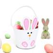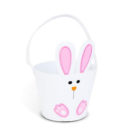 Coș din pâslă cu un model vesel de iepuraș pe lateral. Îl poți umple cu dulciuri sau ouă de Paște și îl poți folosi pentru a-ți saluta oaspeții. Succesul este garantat!