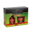 Bucurați-vă de atmosfera plăcută a casei sau a biroului dvs. cu parfumul clasic de măr și scorțișoară. Notele delicate de măr, împletite cu aromele intense ale scorțișoarei, aduc în casă un iz autentic de grădină de toamnă. Lumânarea oferă o lumină caldă și parfumată, iar odorizantul cu bețe completează perfect atmosfera, eliberând treptat aroma sa fermecătoare. Acest set este ideal pentru iubitorii de miresme plăcute și poate fi oferit cu încredere drept cadou celor dragi.