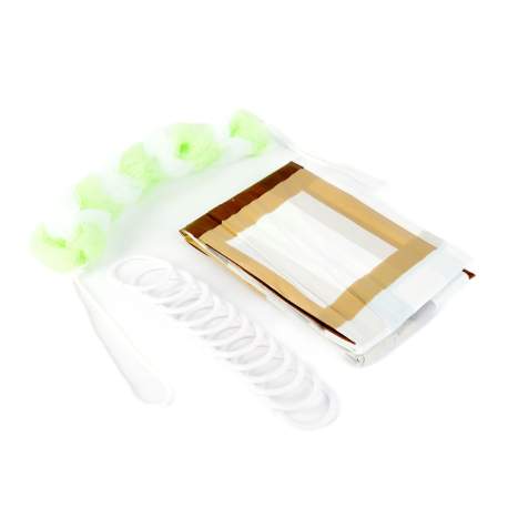 Setul include un burete de baie lung, prevăzut cu șnururi la ambele capete, ideal pentru spălarea spatelui într-un mod confortabil.