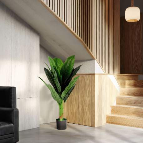 Această decorațiune este ideală pentru locuințe, birouri, spații comerciale sau zone fără lumină naturală, unde plantele vii nu ar putea rezista. Nu necesită udare, lumină sau îngrijire specială, fiind o soluție practică și estetică pentru amenajarea interioarelor. Prin prezența sa, contribuie la o atmosferă relaxantă, plăcută și vizual echilibrată.