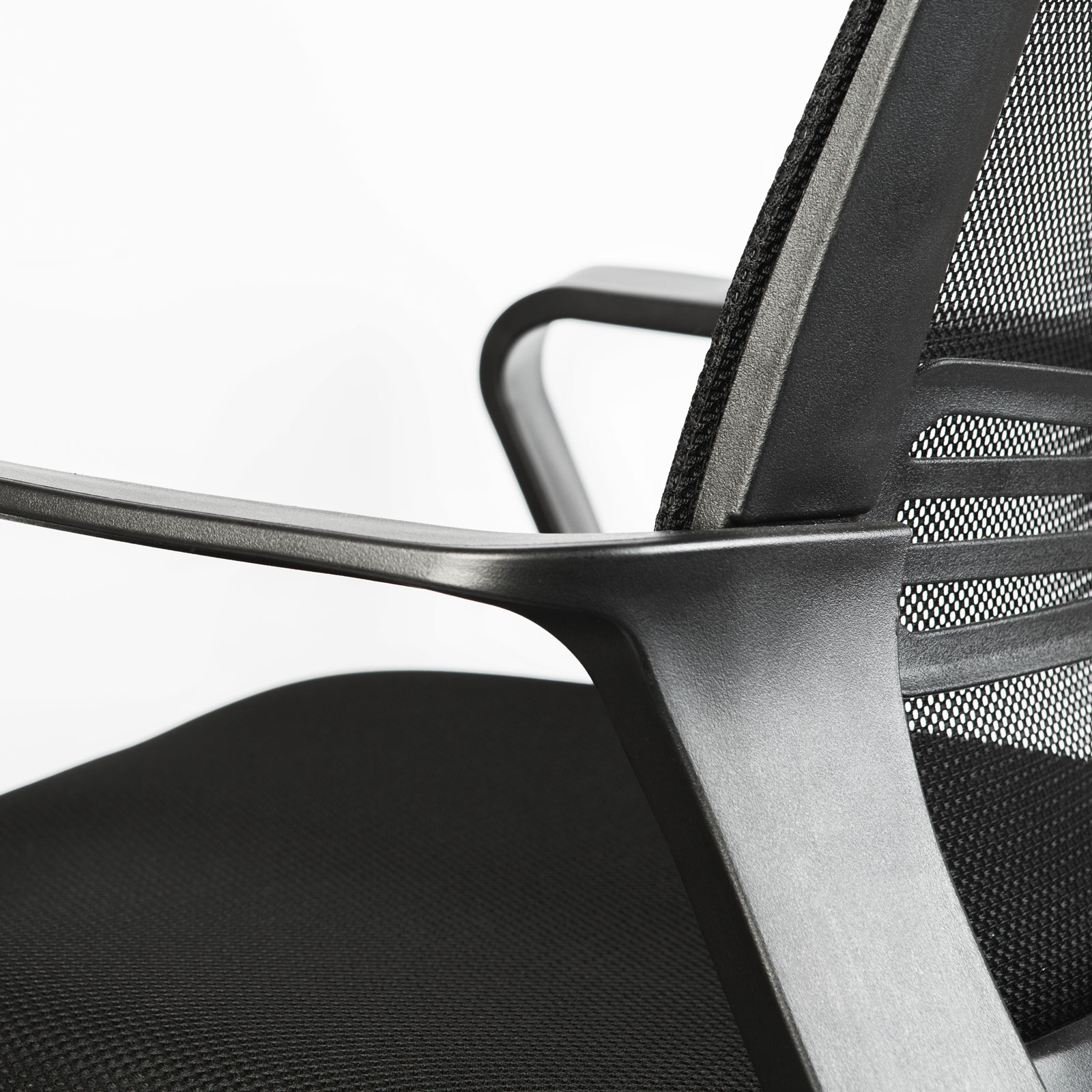 Scaunul de birou BMD1119B este soluția ideală pentru un spațiu de lucru eficient și modern. Cu un design ergonomic complet negru, oferă suport optim în timpul șederii prelungite, atât la birou, cât și acasă. Spătarul din material tip mesh este flexibil și permite o bună circulație a aerului, în timp ce șezutul este realizat din burete moale pe structură de lemn stratificat. Brațele fixe adaugă stabilitate, iar sistemul de reglare a înălțimii cu gazlift și baza metalică cu roți asigură o experiență sigură și practică în utilizarea de zi cu zi.