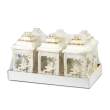 Capacul metalic auriu antichizat oferă protecție flăcării și îi prelungește durata de ardere, iar materialele rezistente asigură utilizarea ei atât în interior, cât și în exterior. Lumânarea din parafină albă, fără parfum, are o durată de ardere de aproximativ 24 de ore, fiind un simbol al liniștii și respectului.