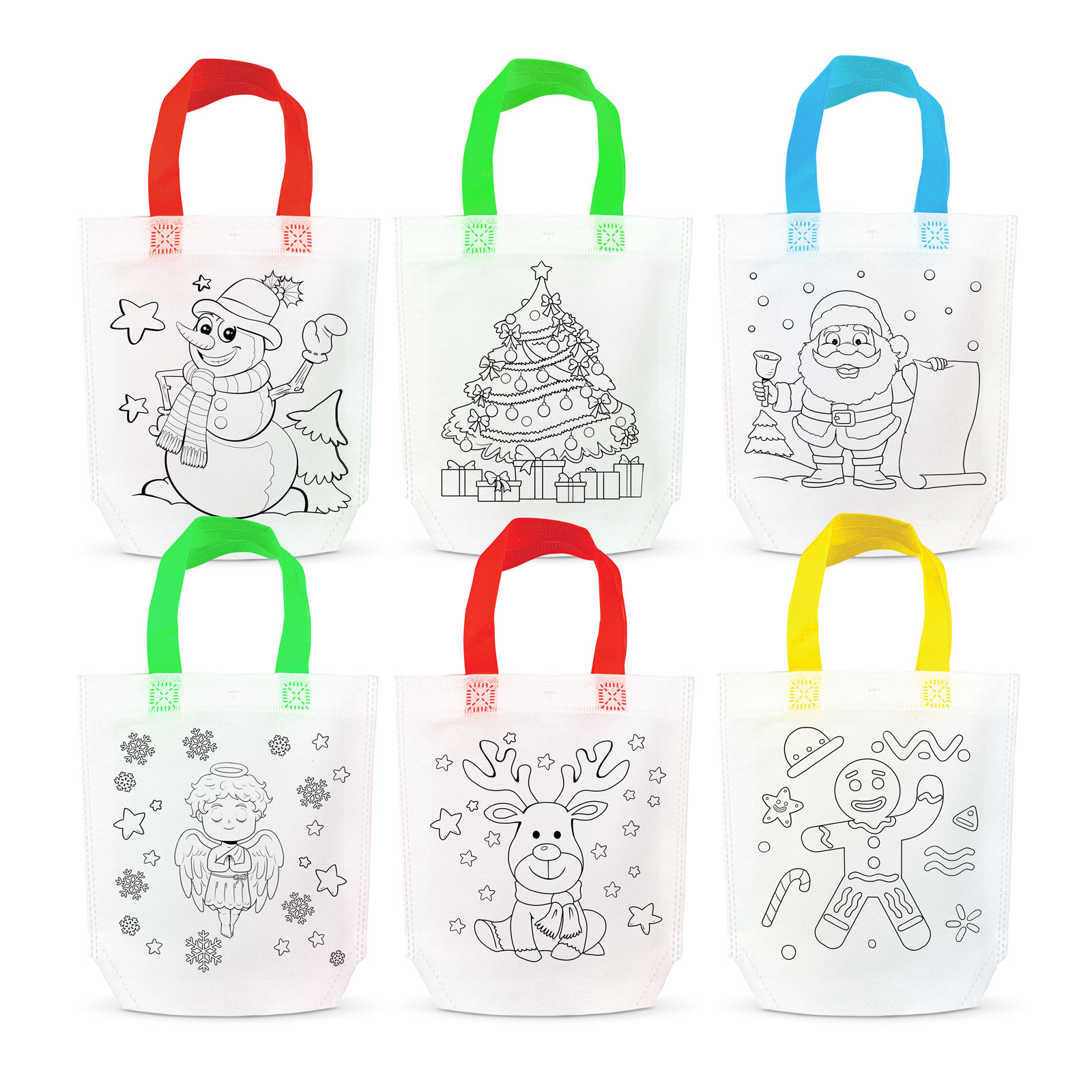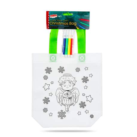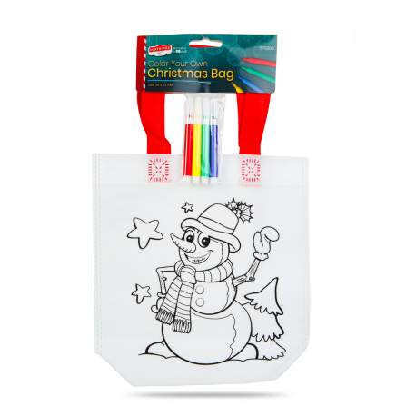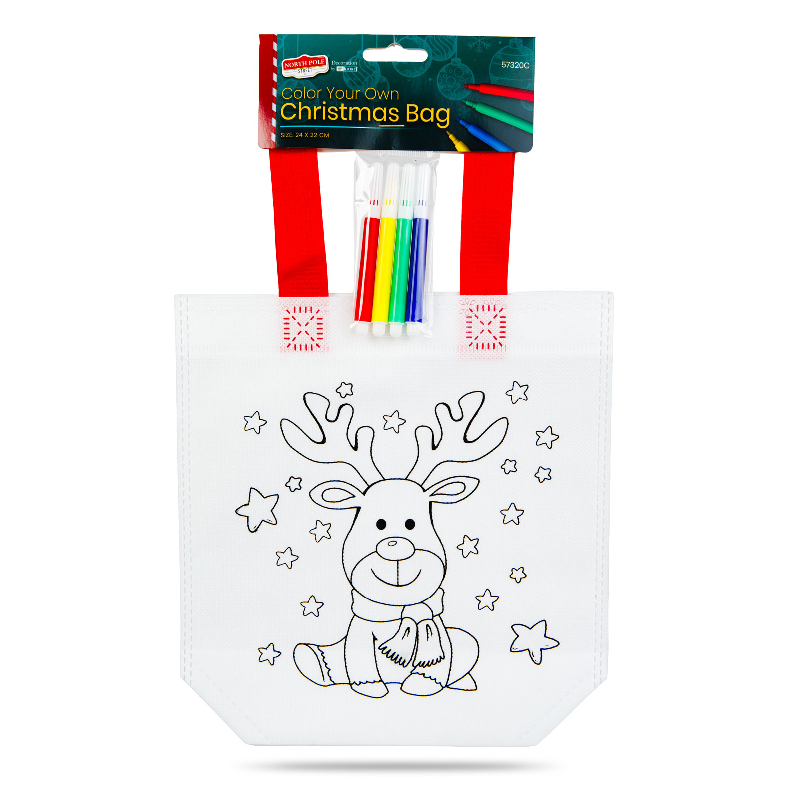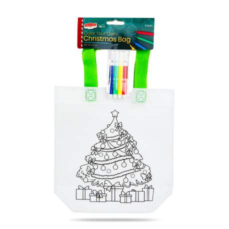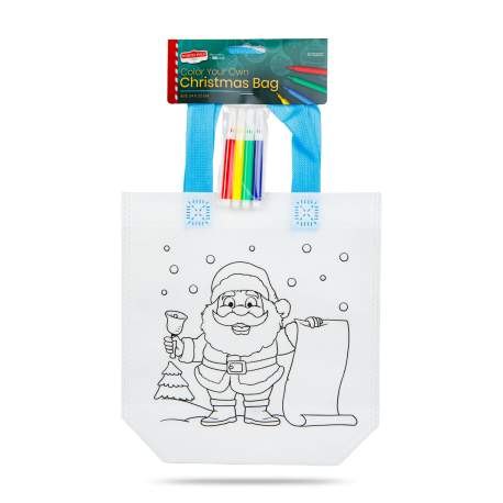 Această geantă colorabilă cu temă de Crăciun, având dimensiunile de 24 x 22 cm, este concepută pentru copii și include 4 markere colorate. Realizată din material PET (nețesut), oferă 6 modele festive diferite, fiind atât o geantă practică, cât și o activitate creativă. Pentru colorare, se recomandă introducerea unui carton gros între cele două straturi ale genții pentru a preveni scurgerea culorilor. Ideală pentru decorarea locuinței în perioada sărbătorilor.