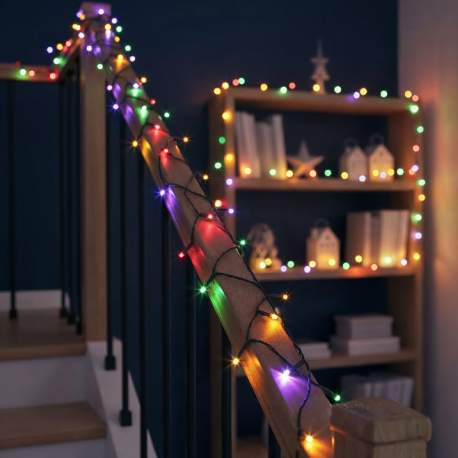 Decorează-ți casa cu acest șir de lumini LED colorat! Cu o lungime a cablului de 30 de metri, este ideal pentru decorarea bradului de Crăciun, locuințelor, birourilor, camerelor diverse sau fațadelor clădirilor. Utilizează comutatorul de pe adaptorul de alimentare pentru a schimba între cele 8 moduri de iluminare. Funcția de memorie păstrează ultima setare aleasă la repornire, iar temporizatorul permite automatizarea iluminatului – aprins 6 ore, oprit 18 ore. Sigur și eficient energetic, cu cablu verde.