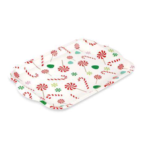 Această tăviță decorativă din plastic aduce o notă veselă și colorată pe masa ta, fiind ideală pentru servirea prăjiturilor, fructelor, bomboanelor sau gustărilor. Designul său jucăuș, cu bastonașe dulci și acadele colorate, creează o atmosferă caldă și plină de bucurie, perfectă pentru zilele de iarnă sau pentru ocazii speciale.