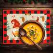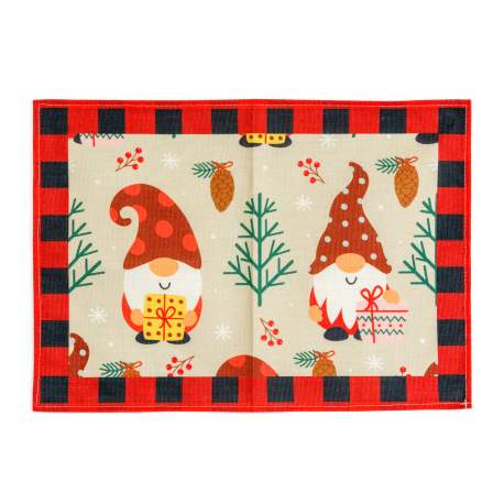 Realizat din poliester rezistent, este ușor de curățat și reutilizabil, potrivit pentru utilizare zilnică sau ocazii speciale. Modelul cu imprimeu roșu/negru în carouri și ilustrația de spiriduș oferă un aspect cald, de inspirație nordică, perfect pentru a crea o atmosferă prietenoasă și plină de farmec.