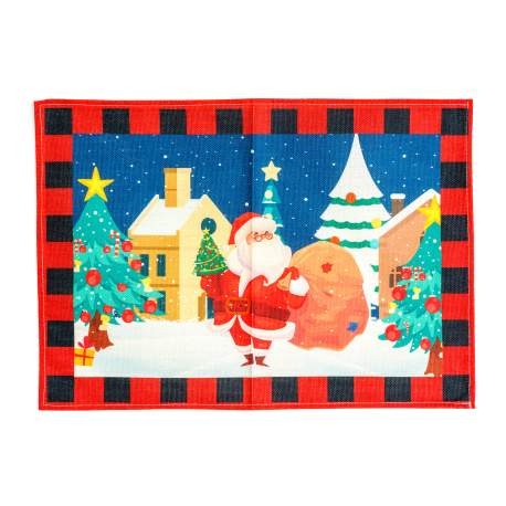 Adaugă un plus de culoare și veselie mesei tale festive cu acest suport de farfurie decorativ, decorat cu imaginea lui Moșul și a bradului. Realizat în stil nordic, cu model în carouri roșu-negru, suportul protejează fața de masă și completează perfect decorul de sezon.