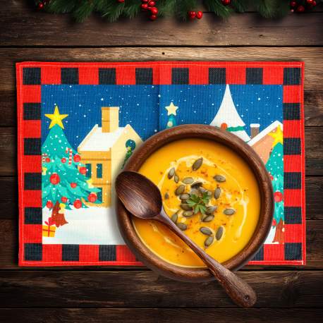 Fabricat din poliester rezistent, suportul este moale, ușor de curățat și reutilizabil. Dimensiunea generoasă îl face potrivit pentru orice tip de masă, fie ea rotundă sau dreptunghiulară. Ideal pentru mesele festive, dar și pentru utilizarea zilnică în perioada rece, aducând un strop de bucurie și eleganță în fiecare încăpere.