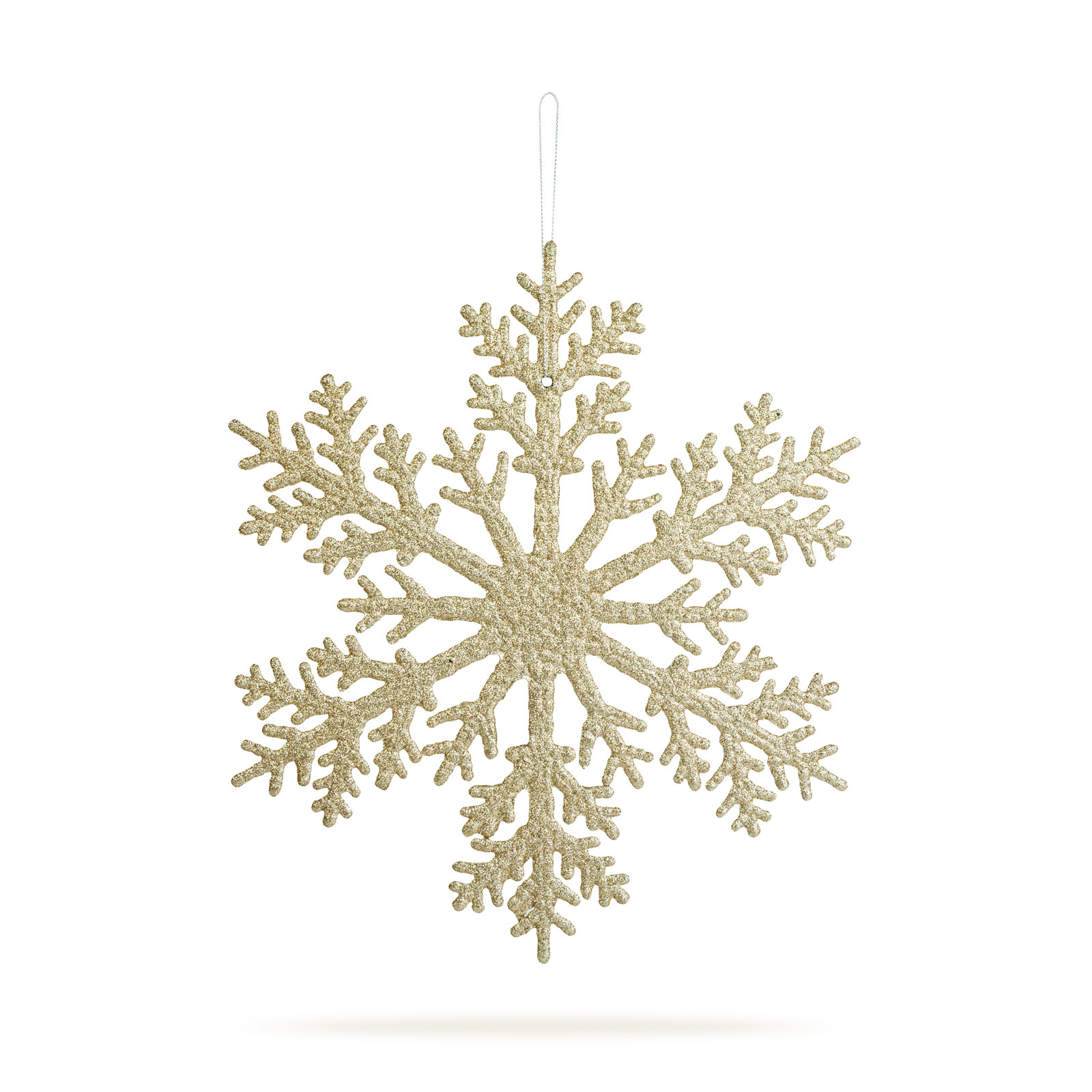 Transformă orice spațiu într-un decor elegant de iarnă cu această decorațiune strălucitoare în formă de fulg de gheață. Finisajul glitter auriu adaugă o notă de rafinament și căldură, reflectând frumos lumina pentru a crea un efect spectaculos.