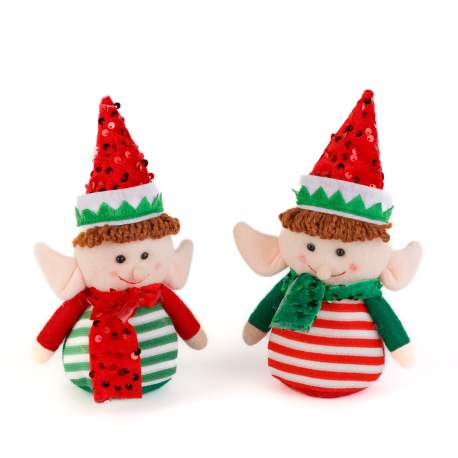 Acest mic spiriduș vesel de Crăciun este alegerea perfectă pentru un decor plin de căldură și bucurie! Cu înălțimea de 21 cm, culori vesele roșu-verde, detalii atent lucrate și material textil moale (poliester și bumbac, umplut cu nisip pentru stabilitate), aduce instant magie în orice cameră. Disponibil în 2 modele diferite – ideal pe masă, raft, pervaz sau lângă brad.