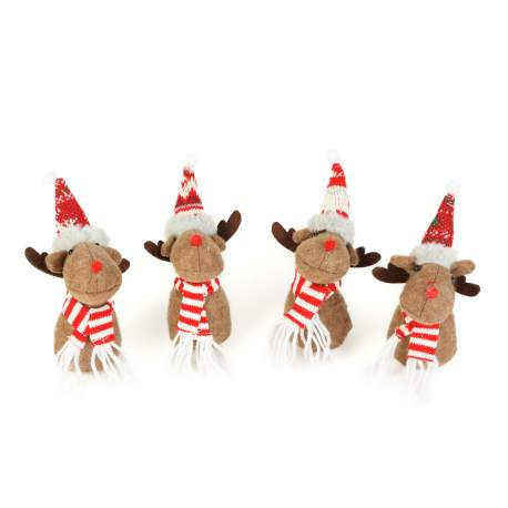 Acești reni adorabili de 18 cm îmbrăcați în stil manó skandinav sunt cele mai drăgălașe accente de Crăciun! Cu căciulițe roșii-albe-gri, urechi mari și fețe vesele, sunt realizați din material textil ultra-moale (poliester + bumbac) și umpluți cu nisip pentru stabilitate. Disponibili în 4 modele diferite – perfecte pe birou, raft, masă sau lângă brad, aduc bucurie și căldură nordică în orice casă.