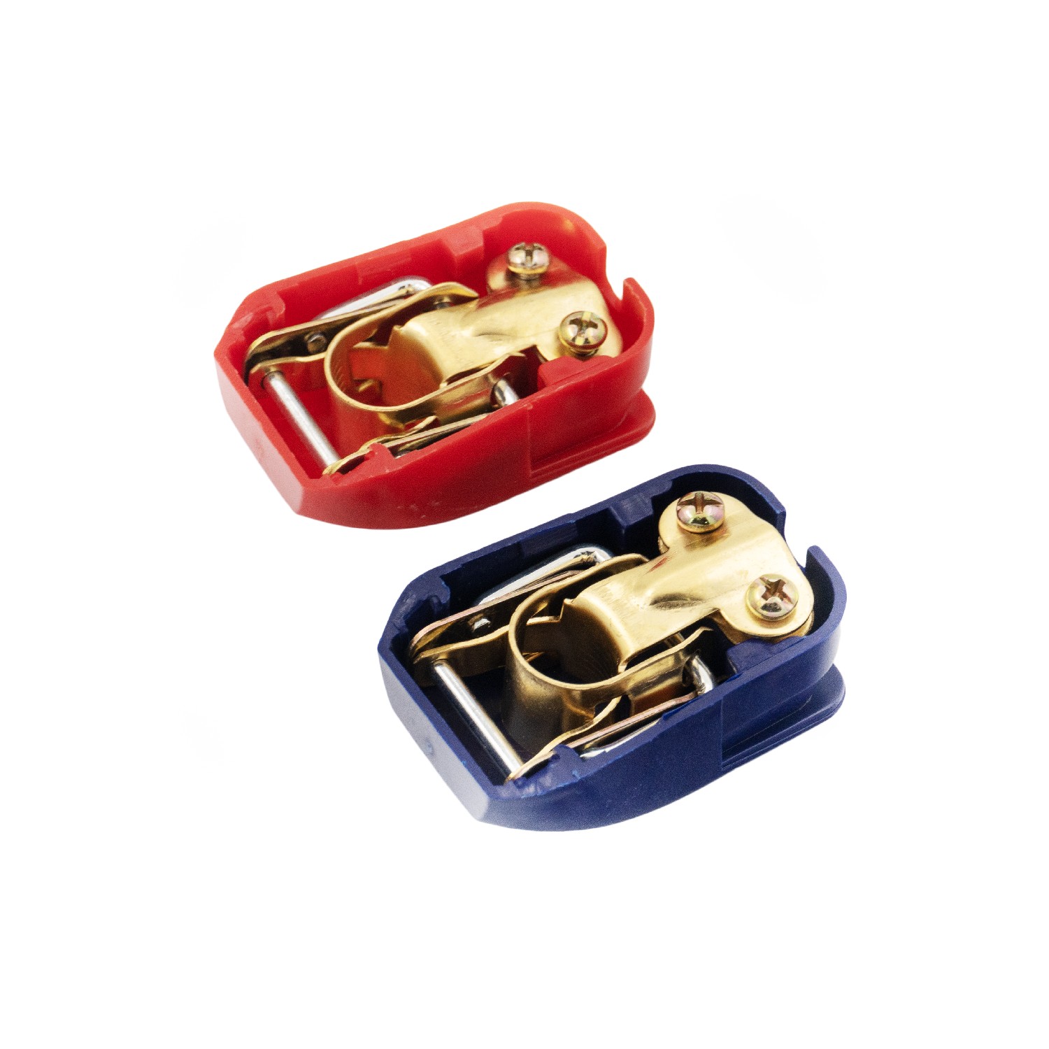 Set complet de borne baterie auto profesionale – clemă + (roșu) și clemă – (negru) din cupru cu capac de protecție plastic. Contact perfect, fixare puternică cu șurub, cablu de alimentare ușor de sertizat. Ideal pentru înlocuire borne uzate, montaj baterie nouă sau proiecte auto. Rezistă la curenți mari, nu se oxidează, nu se slăbesc în timp. Obligatoriu în orice portbagaj sau atelier!
