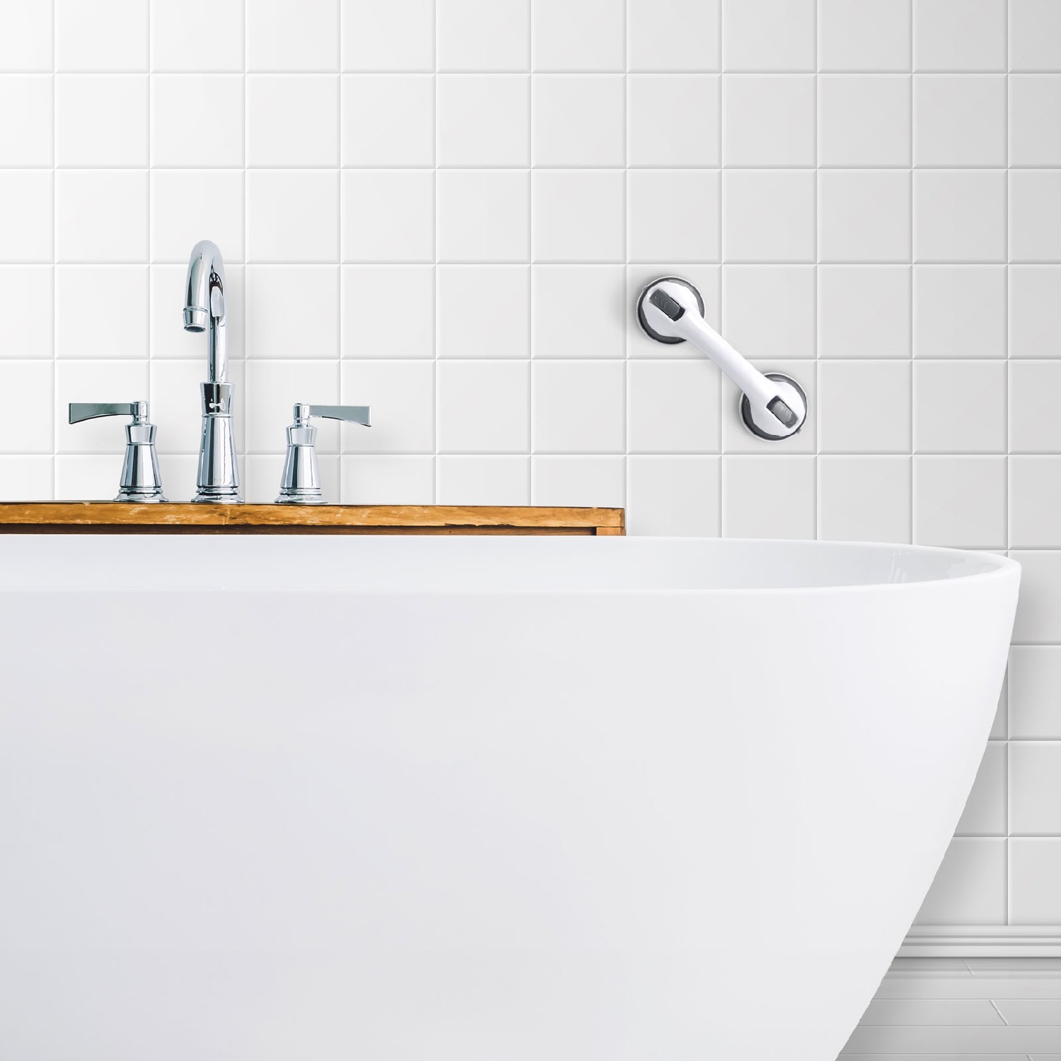 Mâner de siguranță baie cu ventuze puternice – soluția rapidă și sigură pentru băi alunecoase! Se montează în 10 secunde pe faianță, sticlă sau suprafețe netede fără găurit, fără șuruburi și fără urme. Ventuzele mari de 95 mm aderă perfect și suportă până la 50 kg – ideal pentru persoane în vârstă, copii sau după operații. Lungime 30 cm, design alb discret, perfect lângă cadă, duș sau WC. Recomandată de medici și fizioterapeuți – siguranță maximă în baie!