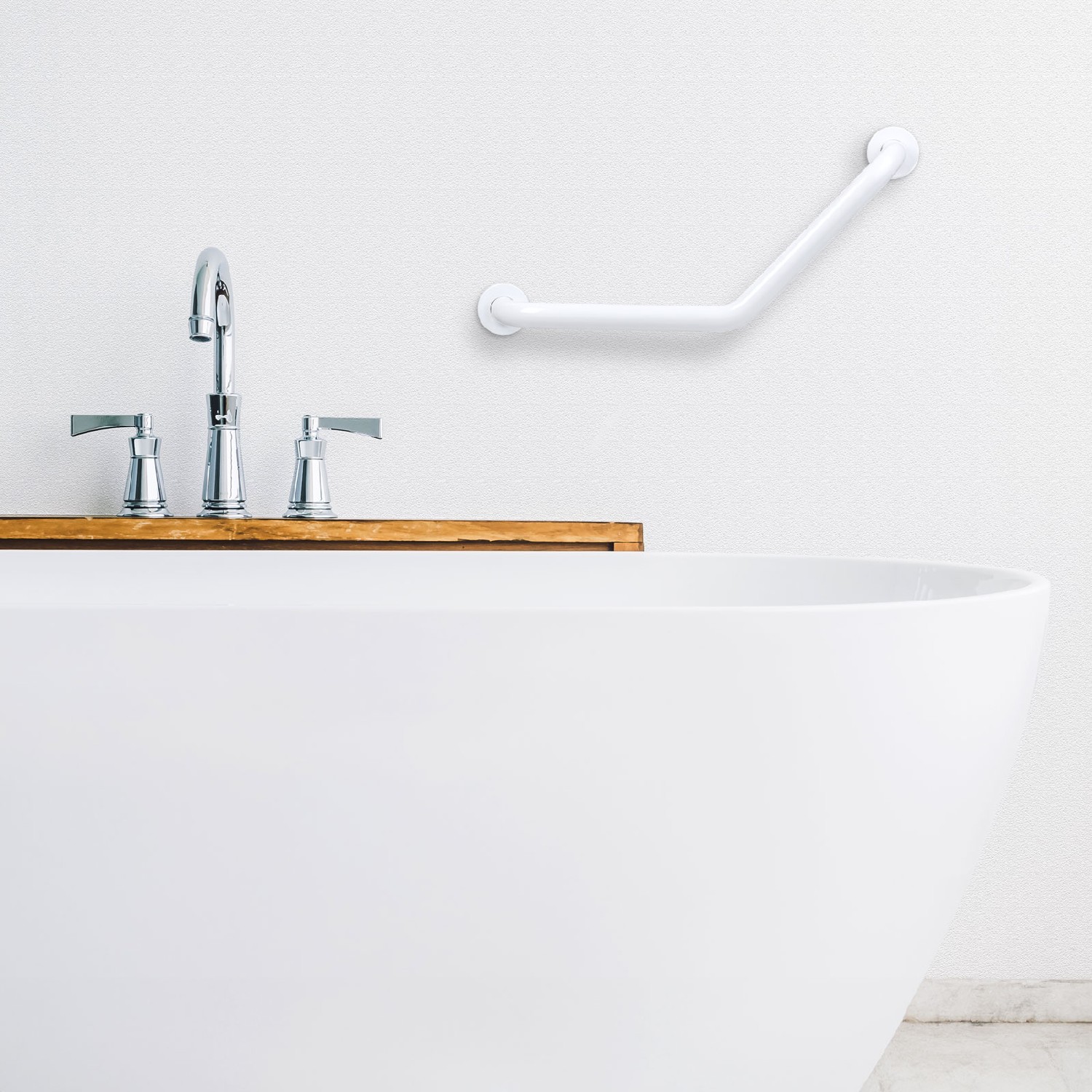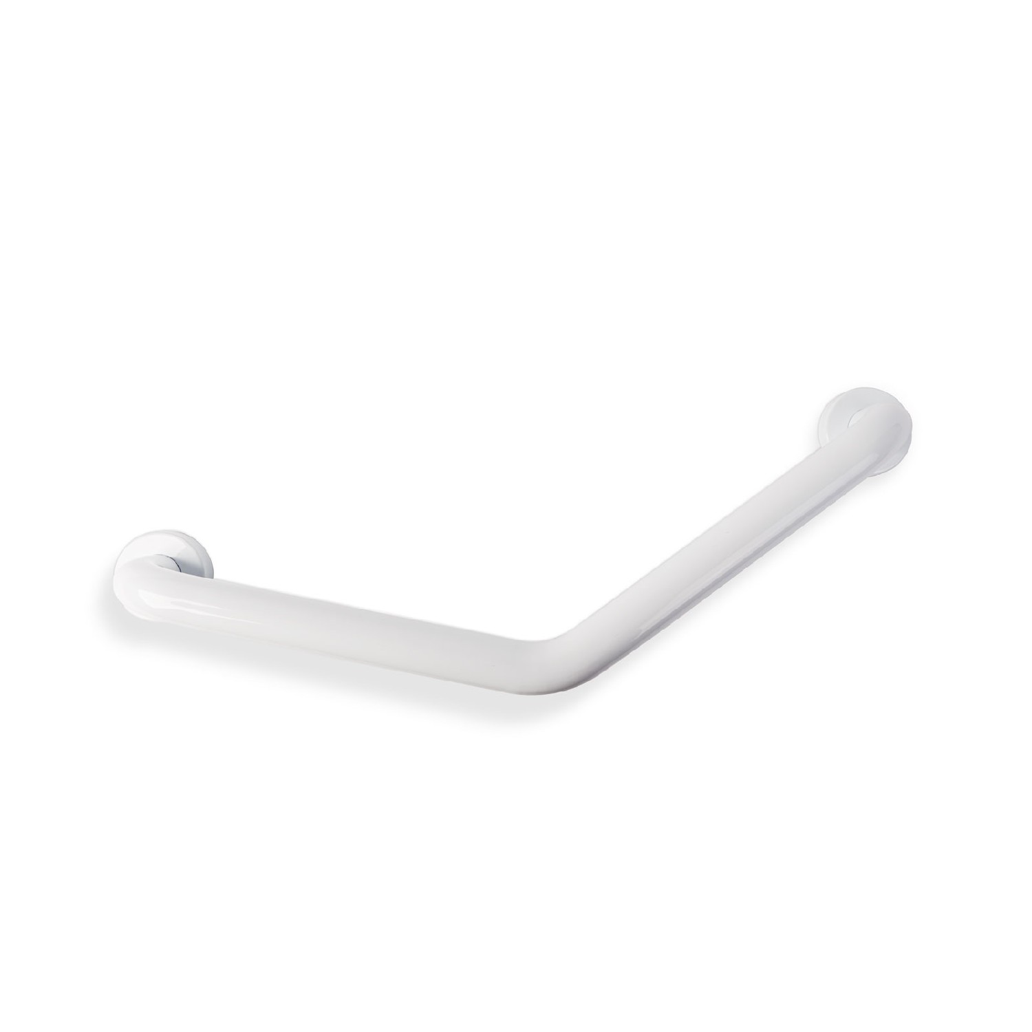 Bară de siguranță baie cu unghi de 45° – soluția elegantă și ultra-rezistentă pentru băi accesibile! Designul înclinat oferă prindere naturală și sigură atât în poziție verticală, cât și orizontală – ideală lângă cadă, duș, WC sau în hol pentru persoane în vârstă, gravide, cu mobilitate redusă sau copii sau după operații. Oțel inoxidabil vopsit alb, grosime 0,6 mm, diametru 25 mm, capacitate reală 200 kg la montaj corect. Include toate accesoriile de fixare + capace decorative – montaj curat și estetic. Recomandată de medici și arhitecți!