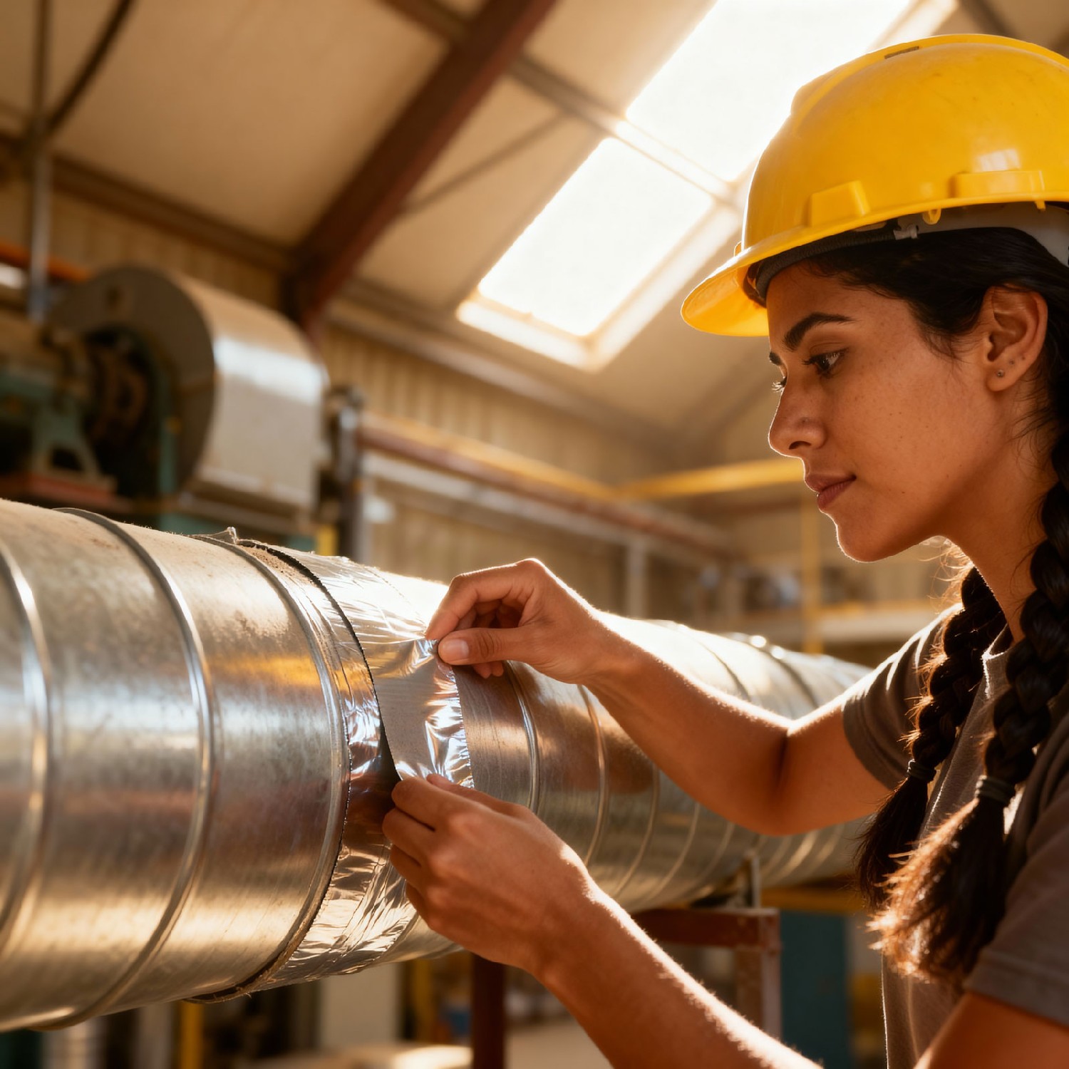 Bandă adezivă din aluminiu de calitate înaltă, cu adeziv acrilic puternic, ideală pentru etanșare, izolație termică, reparații și protecție împotriva umezelii pe suprafețe metalice, plastice, sticlă sau alte materiale. Suprafața reflectorizantă oferă proprietăți excelente de reflecție termică și rezistență la căldură, UV (max. 14 zile) și intemperii. Asigură aderență fiabilă și durabilă în aplicații HVAC, conducte de ventilație, izolații, reparații fitinguri sau protecție împotriva vaporilor. Clasificare lângă-rezistentă conform DIN 4102 (A1). Potrivită atât pentru interior, cât și pentru exterior.