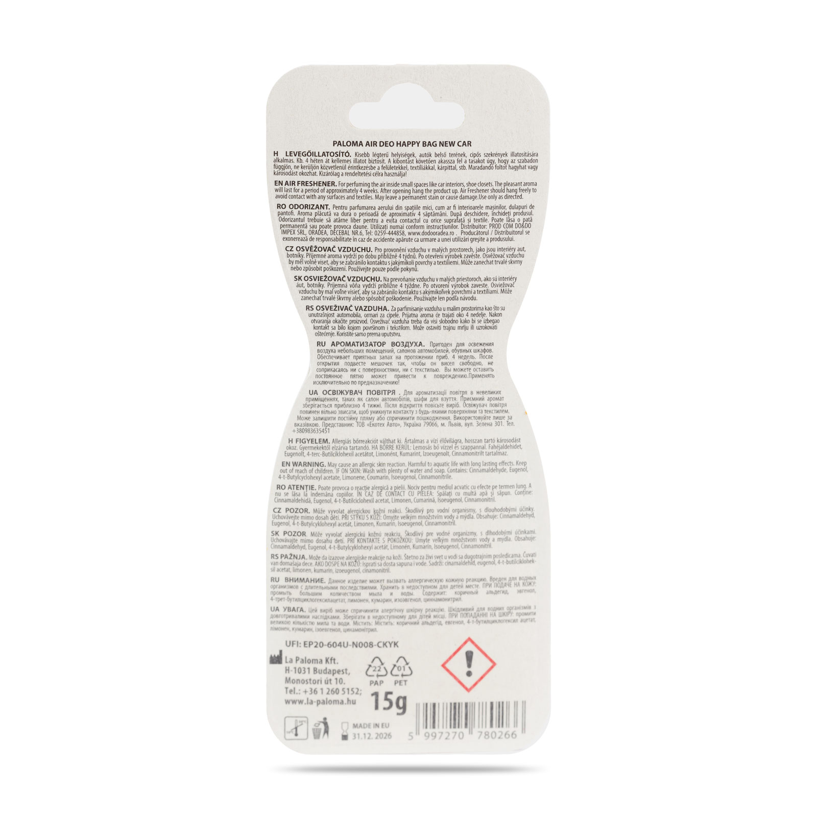 Achiziționează acum Paloma Happy Bag - New Car și bucură-te de aroma proaspătă și revigorantă în viața ta de zi cu zi!