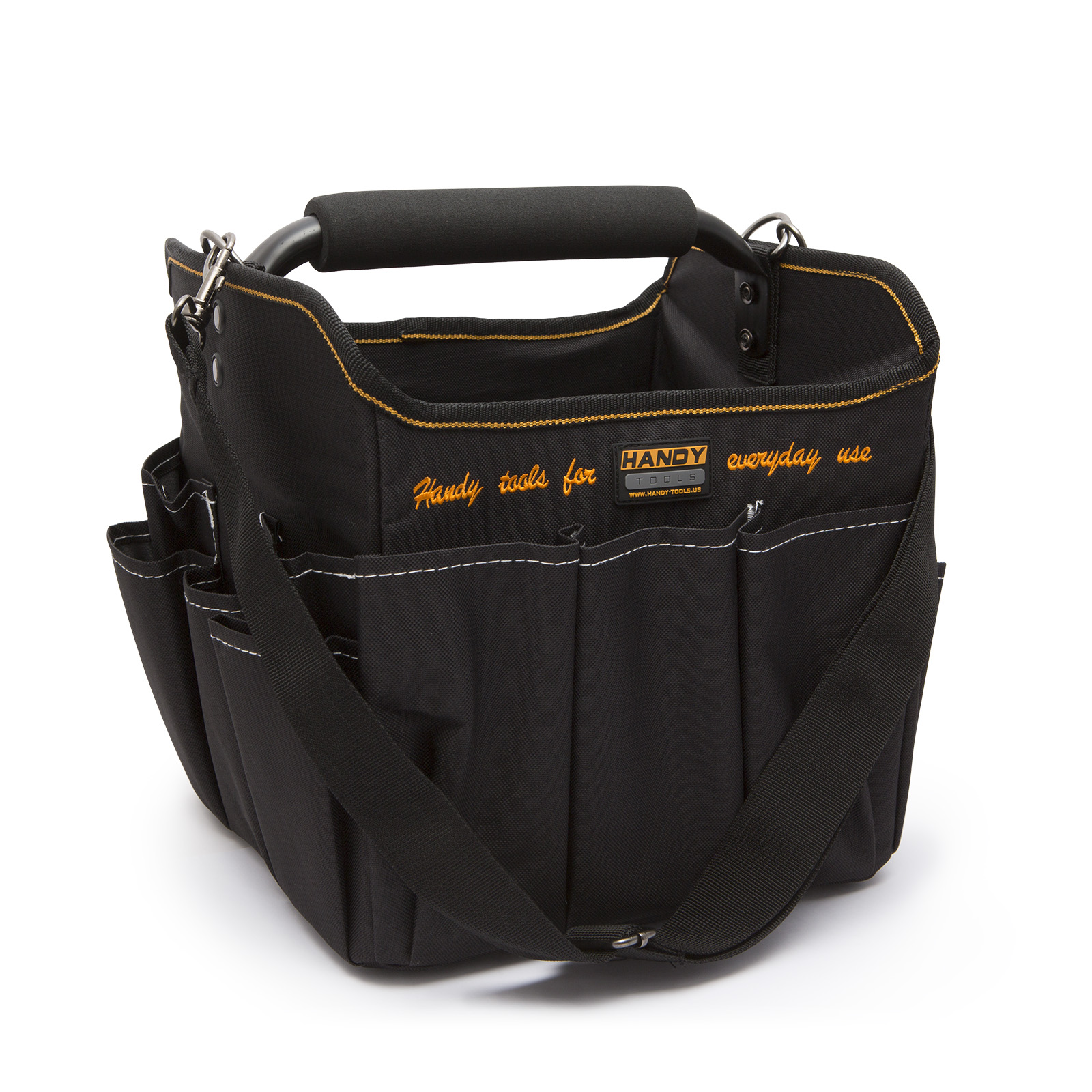 Echipata cu maner ergonomic din metal, cu acoperire buretoasa, pt. comoditate in utilizare. Cureaua de umar este un important accesoriu, care va da posibilitatea de a purta comod sculele (manerul si cureaua pot fi detasate separat, in functie de necesitati).