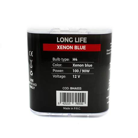 Set de 2 becuri H4 LONG LIFE - Alb Xenon, cu intensitate luminoasă cu 130% mai mare!