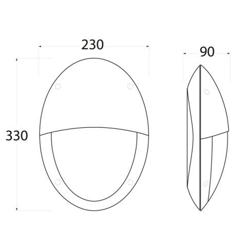 Lampa murala model oval, in executie antisoc si anticorozva, rezistenta la radiatii UV, cu soclu E27.